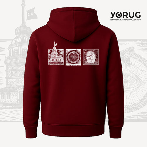 Bordo Unisex Hoodie Kız Kulesi & Kehanet